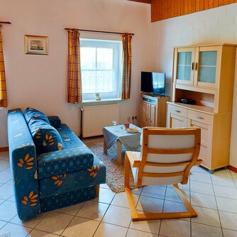 Die Wohnung besteht aus einem Wohnzimmer mit einem Doppelbett, einem Schlafsofa und einem Badezimmer. Draußen steht eine Terasse mit Sitzmöglichkeiten zur Verfügung. |